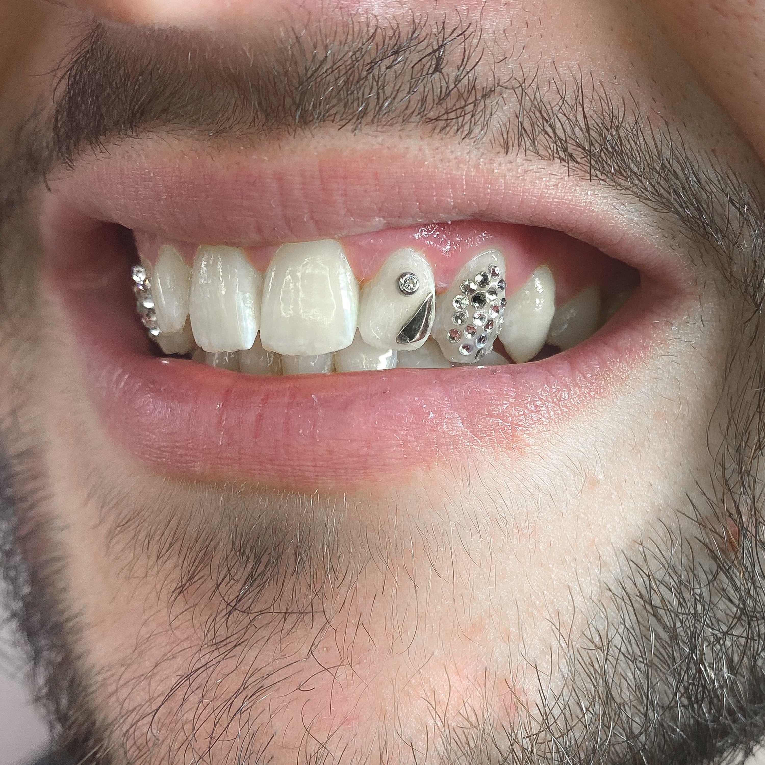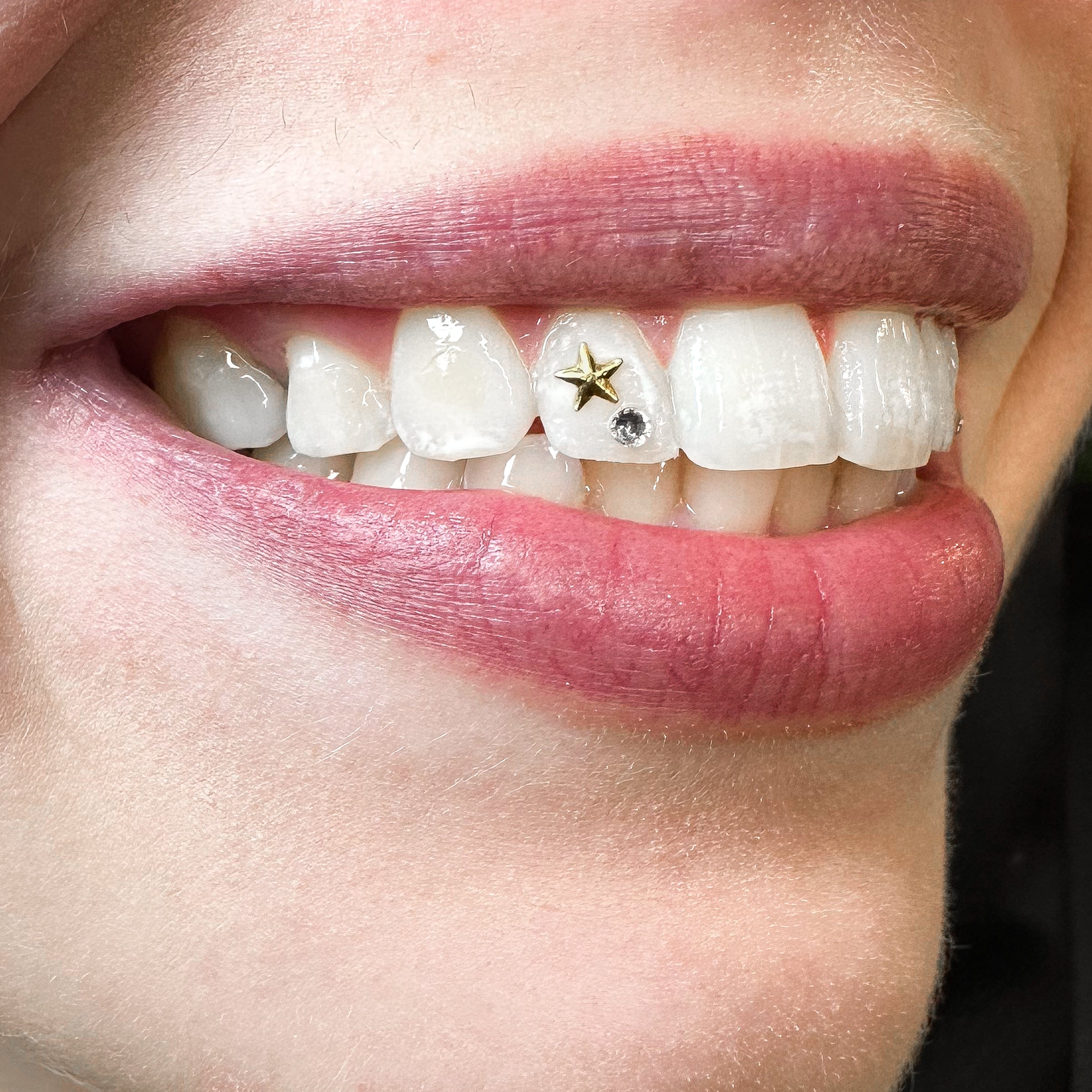 The process is similar to that of fitting braces, we clean the tooth, protect the enamel, and then using adhesive, we apply the crystal or gold piece of your choice, securing it in place with a light cure.