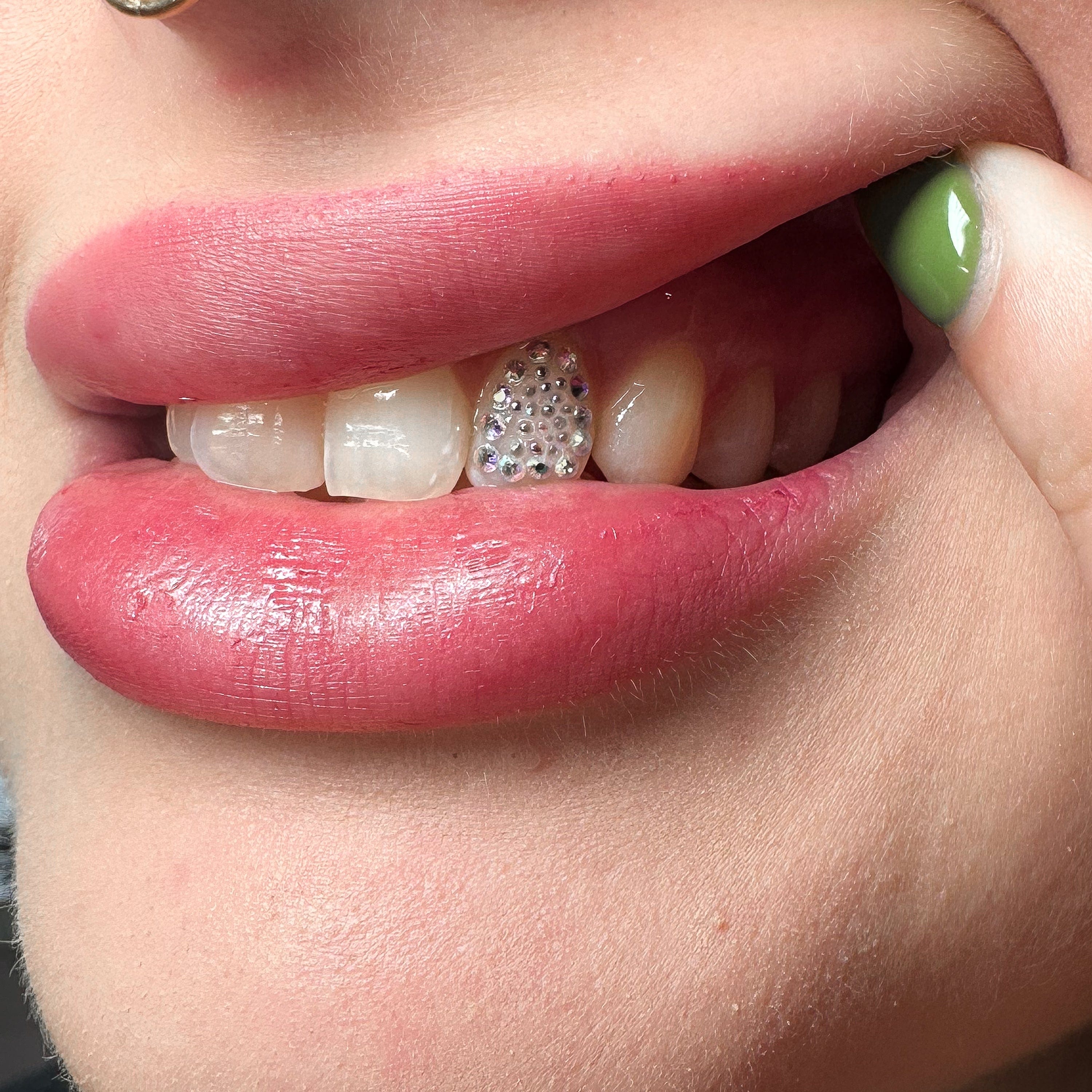 Tooth Gems are small, decorative pieces that are applied to the surface of the tooth to add a touch of sparkle and glam. Tooth gems can come in a variety of shapes, sizes, and colours, allowing individuals to customise their smiles in a unique and creative way.