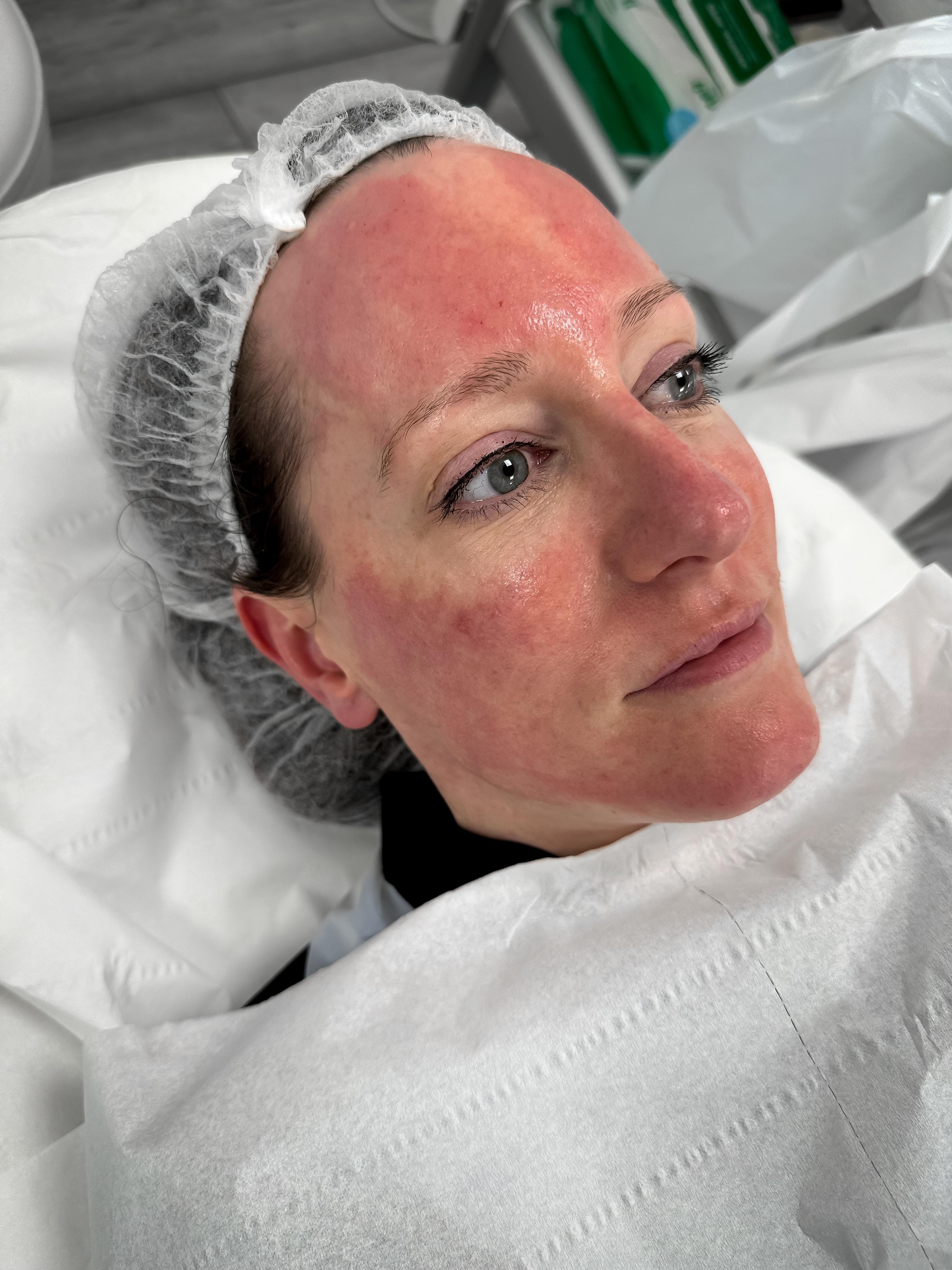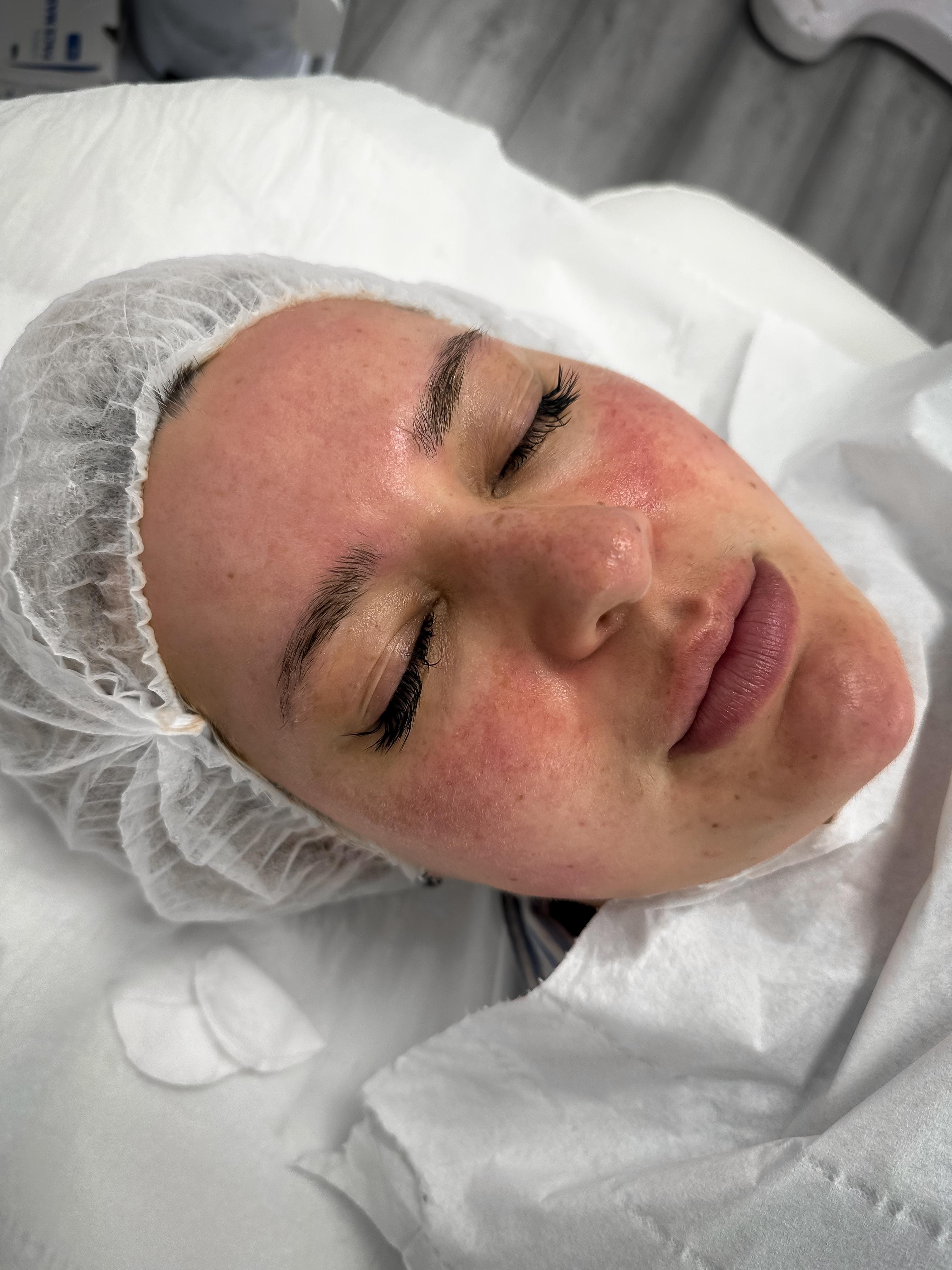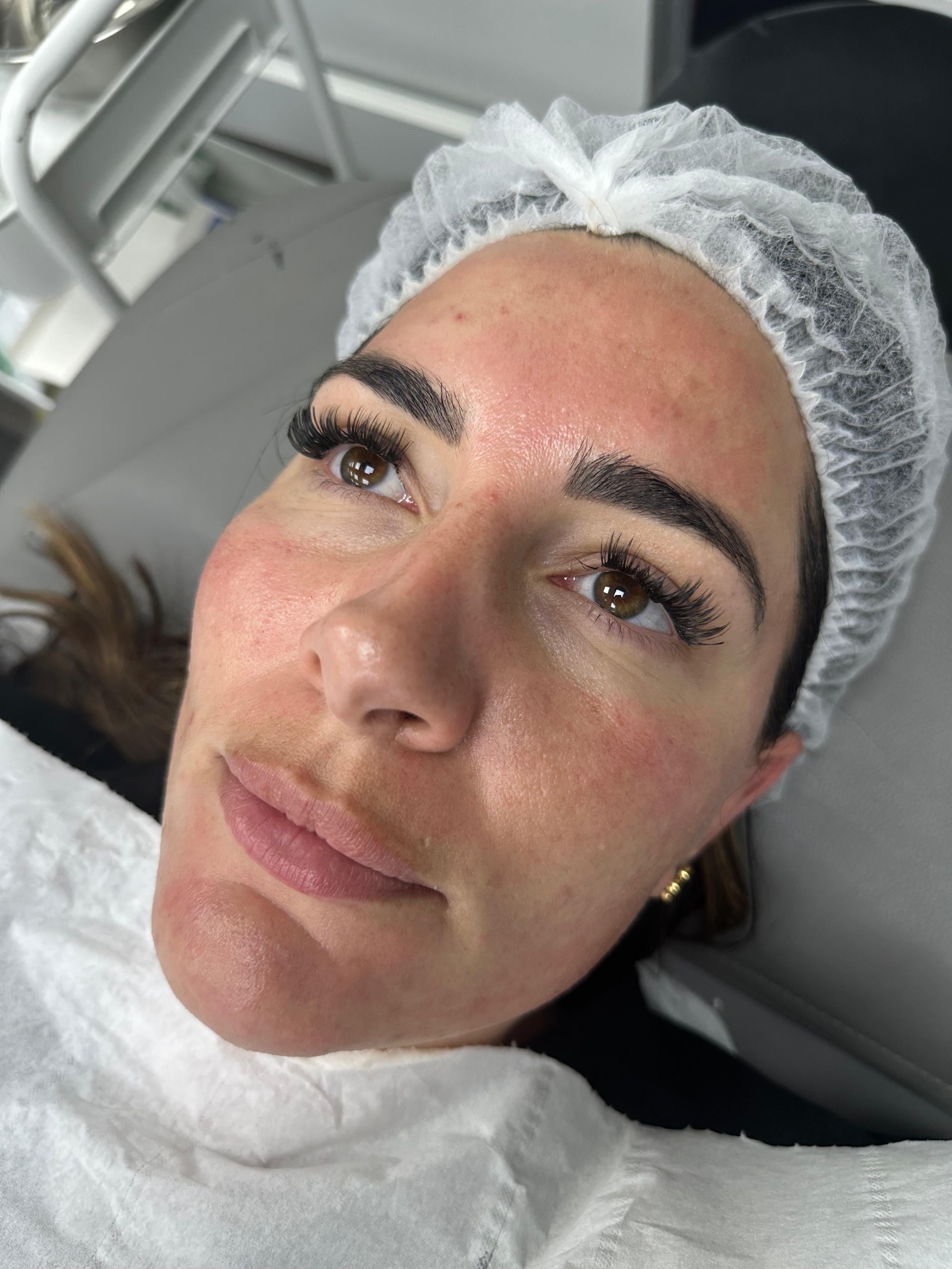 After microneedling, your skin will look slightly flushed, like a mild sunburn. This usually settles within 24–48 hours.